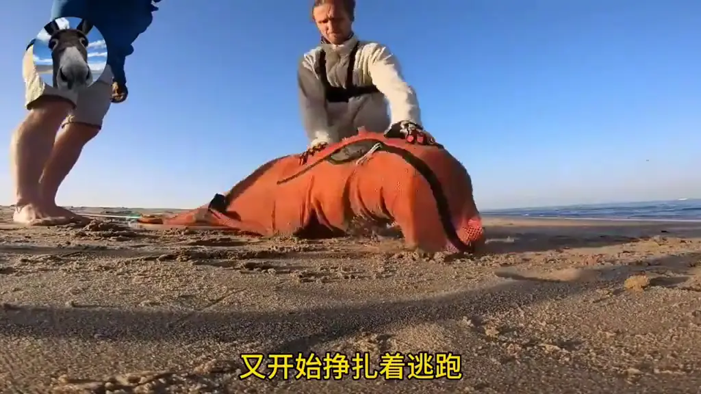 一望无际的沙滩上突然来了几个男人,拿着抄网就冲向了海报群。成千上万只海报顿时吓得惊慌失措,而男子偏偏盯上了这只,只因为他长得与众不同。在他的脖子上缠绕着一根根鱼线,想要帮他剪断也只能将他套住。海豹害怕的拼命逃跑,显然他没有理解男子的好意。好在男子及时套住了他,并将他拉了上来。